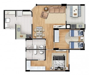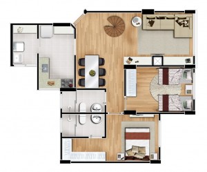 Seus apartamentos padrão contam com 2 dormitórios e área a partir de 71,73m².
